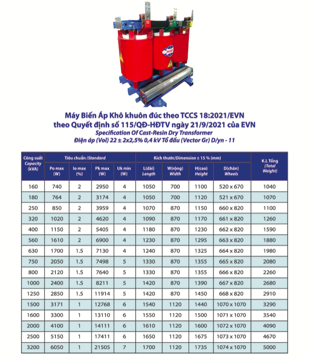 MÁY BIẾN ÁP KHÔ KHUÔN ĐÚC THEO TCCS 18:2021/EVN